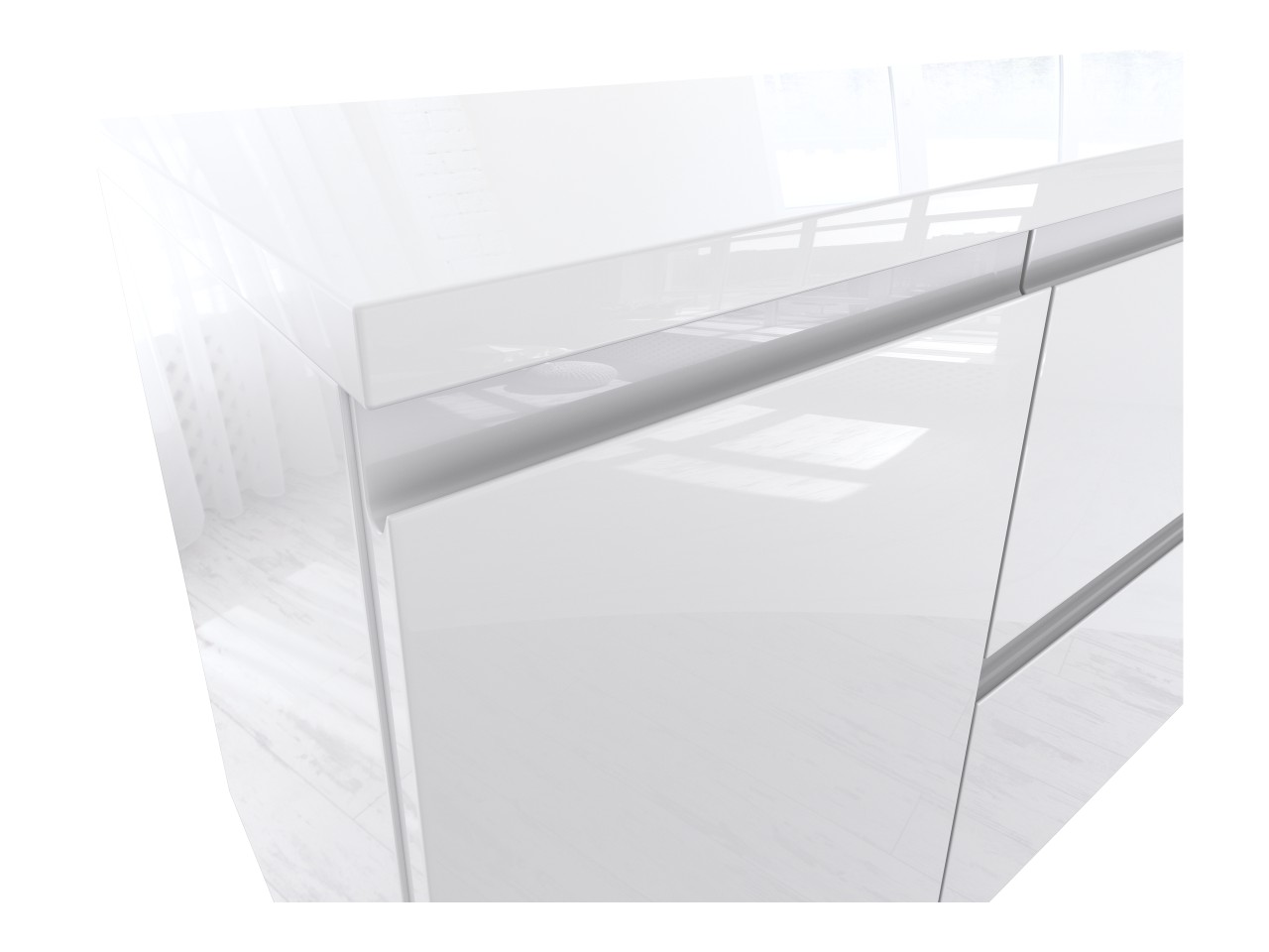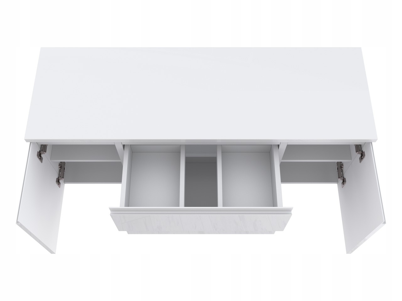 - Trwała powłoka lakiernicza: Powierzchnia pokryta lakierem w białym połysku jest odporna na zarysowania, wilgoć i działanie promieni UV, co gwarantuje długotrwały estetyczny wygląd.