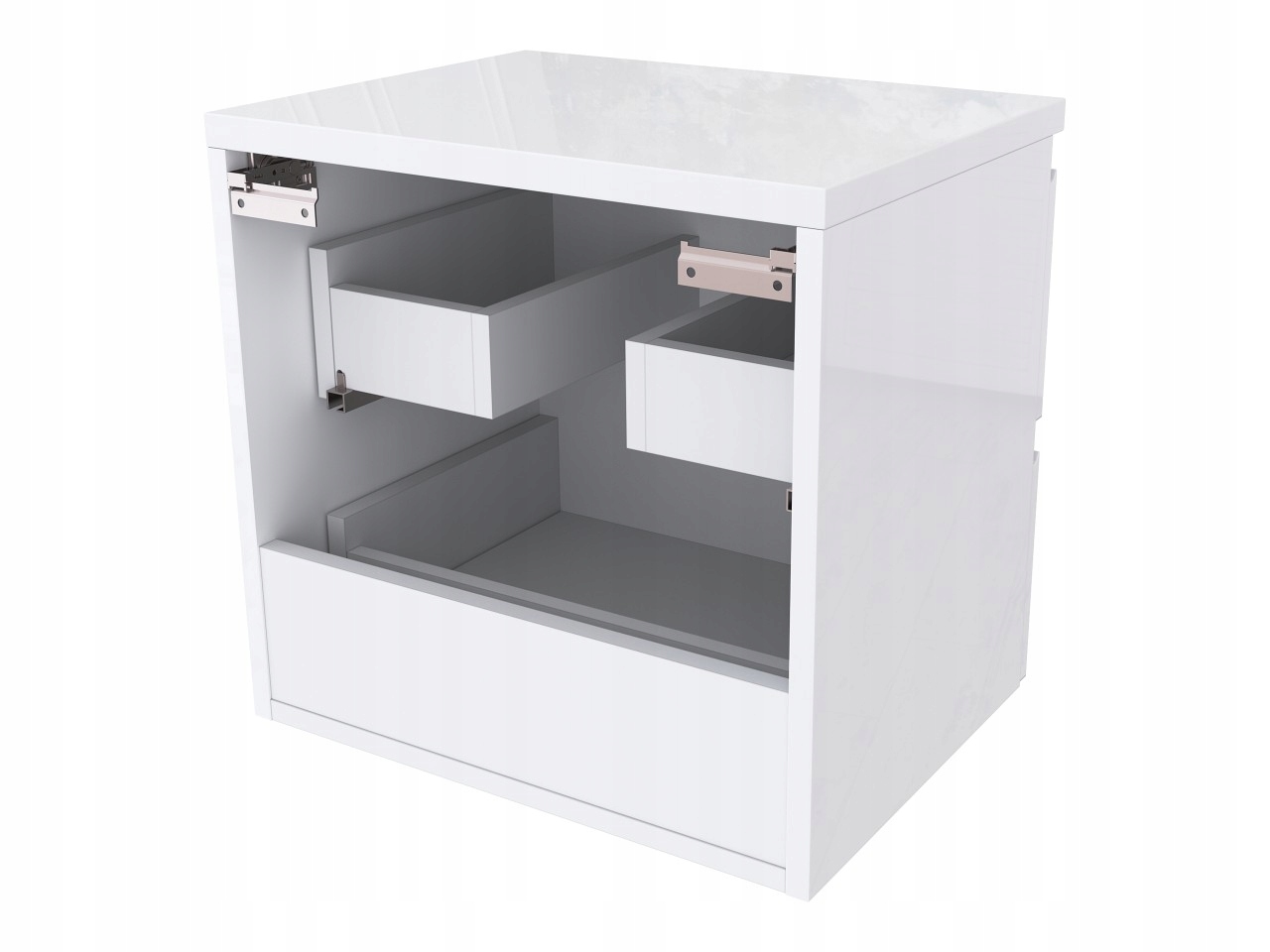 - Trwała powłoka lakiernicza: Powierzchnia pokryta lakierem w białym połysku jest odporna na zarysowania, wilgoć i działanie promieni UV, co gwarantuje długotrwały estetyczny wygląd.