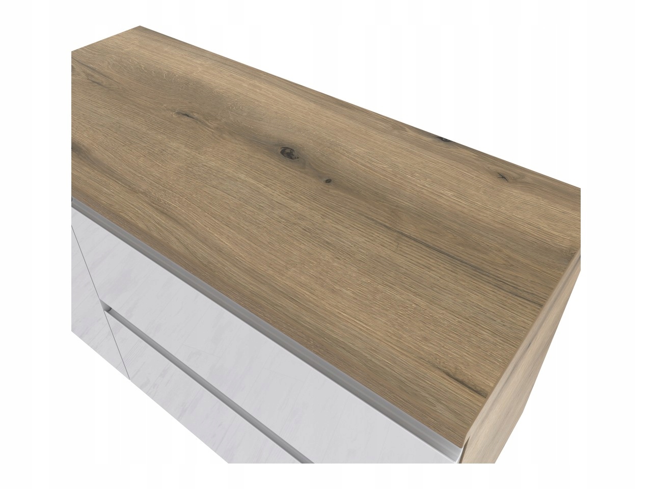 - Uodporniony na wilgoć: Dzięki odpowiedniemu zabezpieczeniu laminatem a także oklejaniem klejem PUR, blat jest uodporniony na działanie wilgoci, co czyni go idealnym wyborem do łazienek.