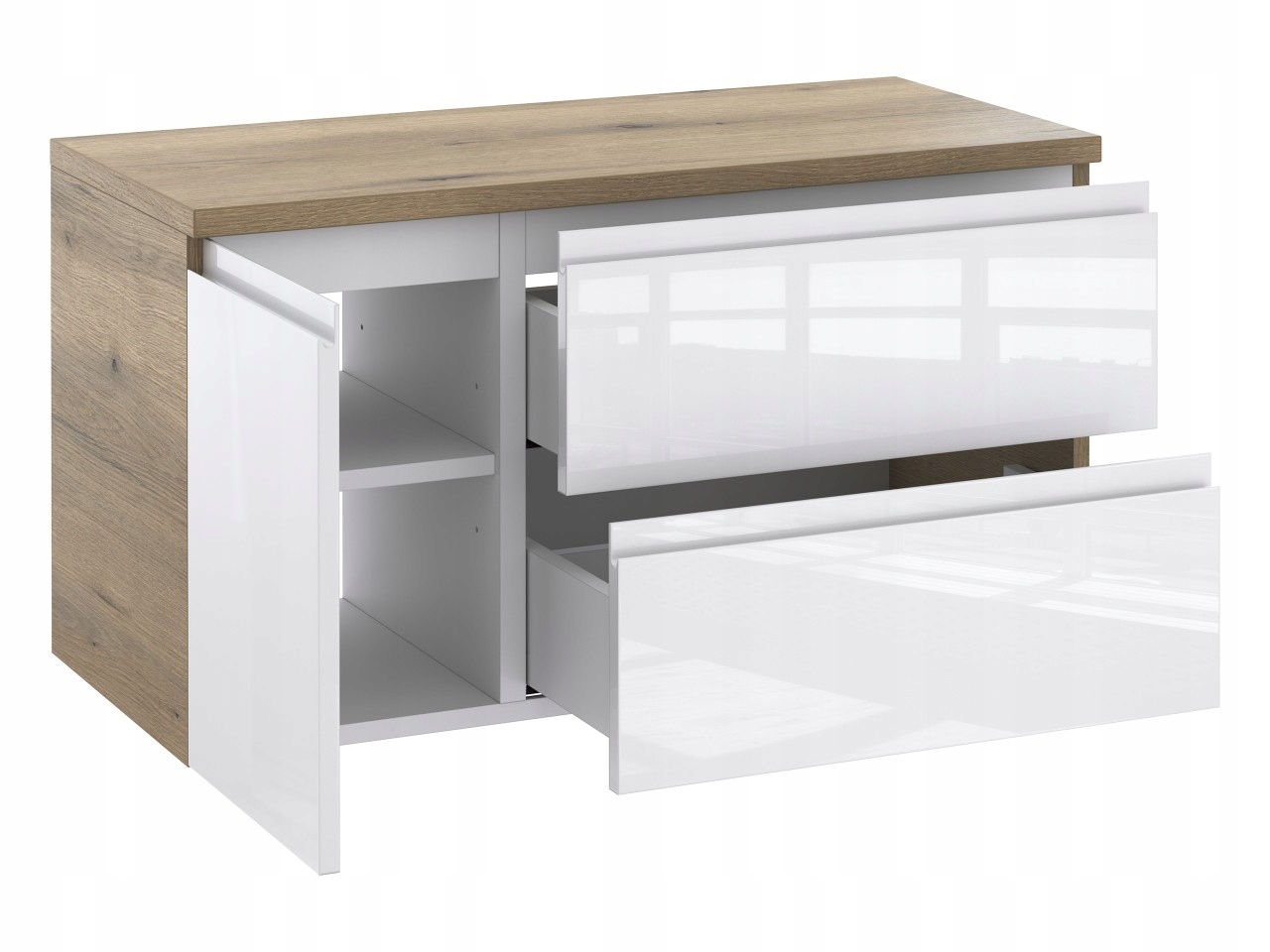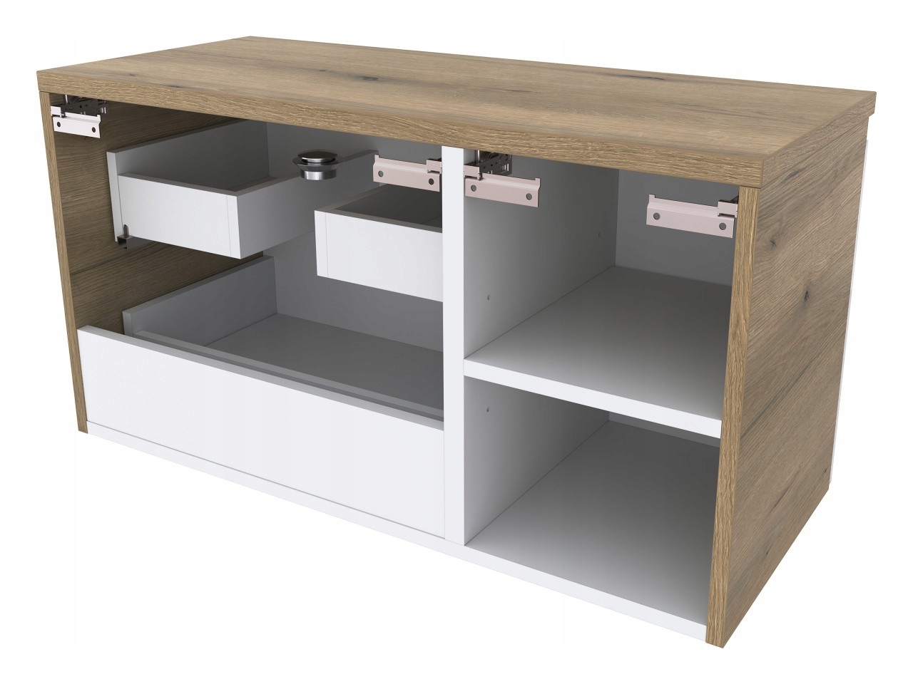 - Trwała powłoka laminowana: Powierzchnia pokryta laminatem jest uodporniona na zarysowania, wilgoć i działanie wysokich temperatur, co gwarantuje długotrwały estetyczny wygląd.