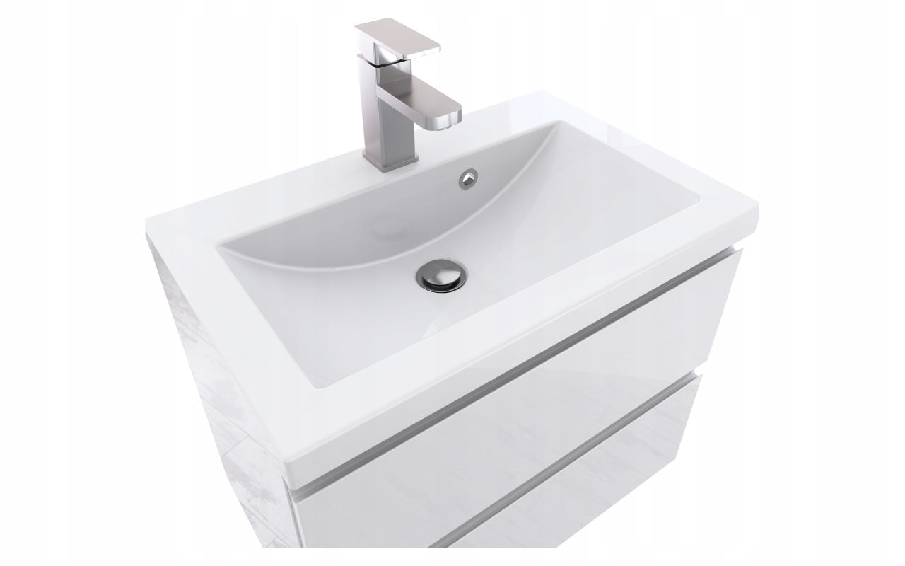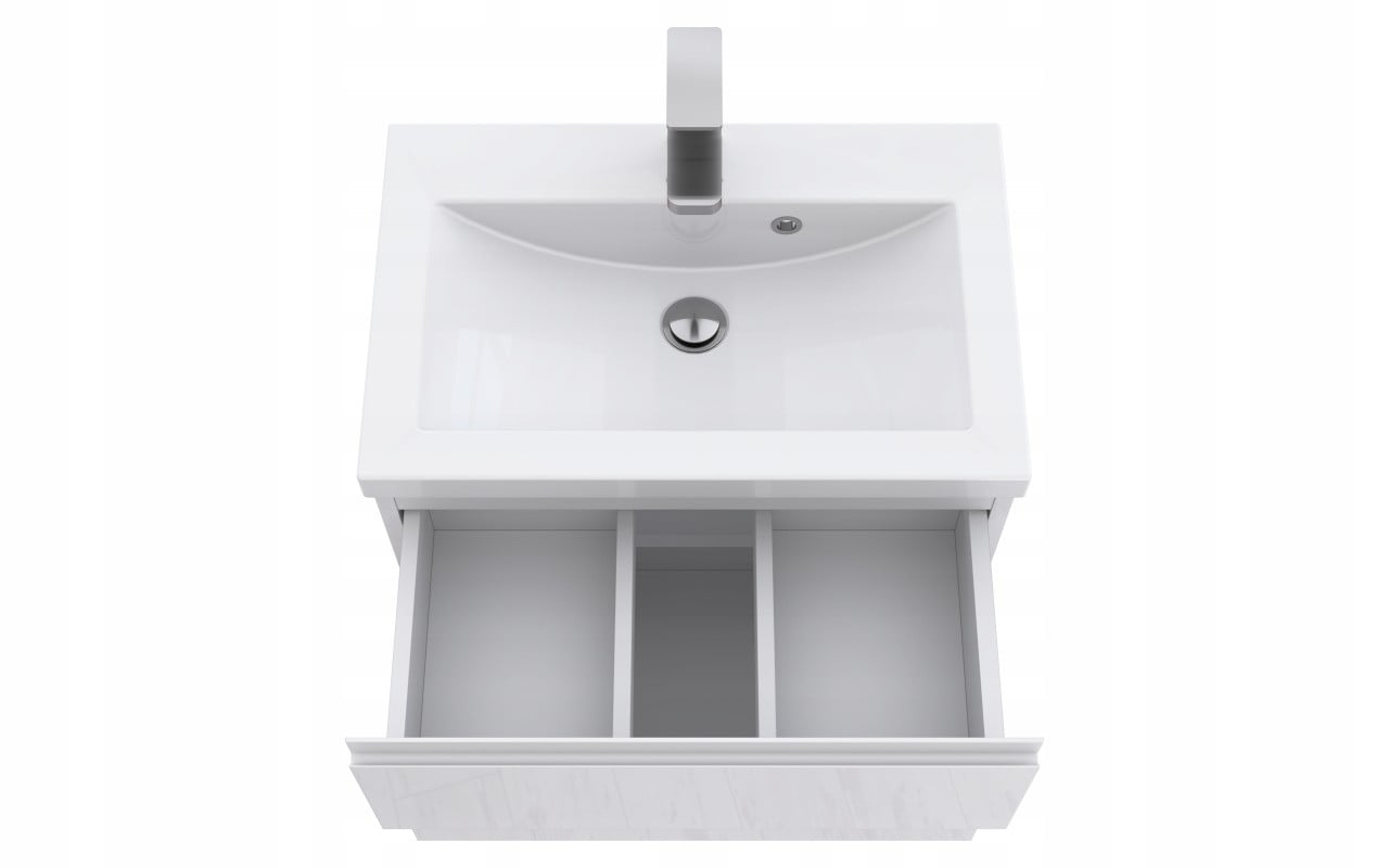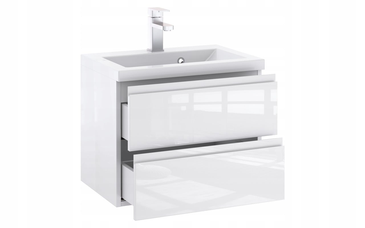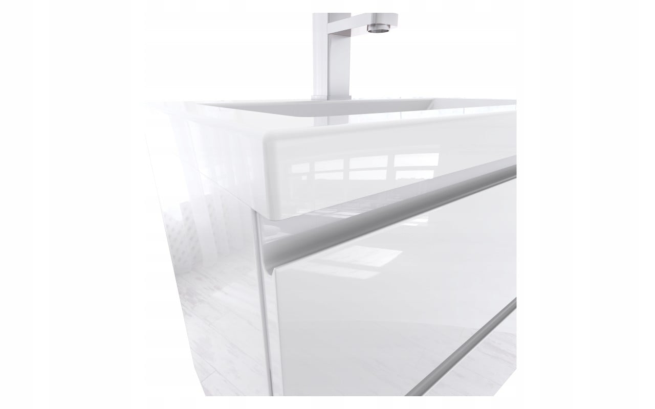 Szafka Łazienkowa z Umywalką NOV 60 cm D - Biały Lakier Połysk, Uchwyty Frezowane