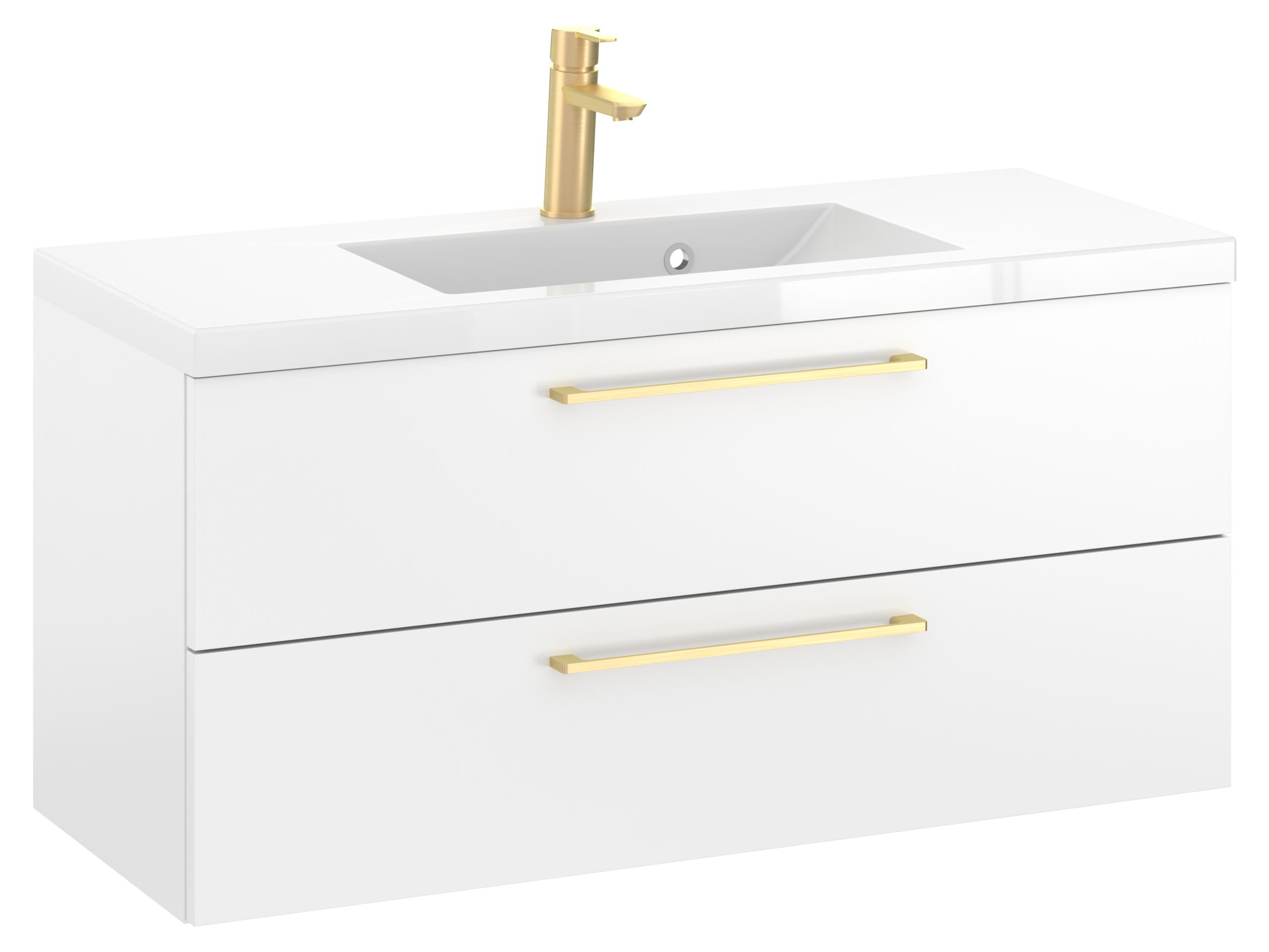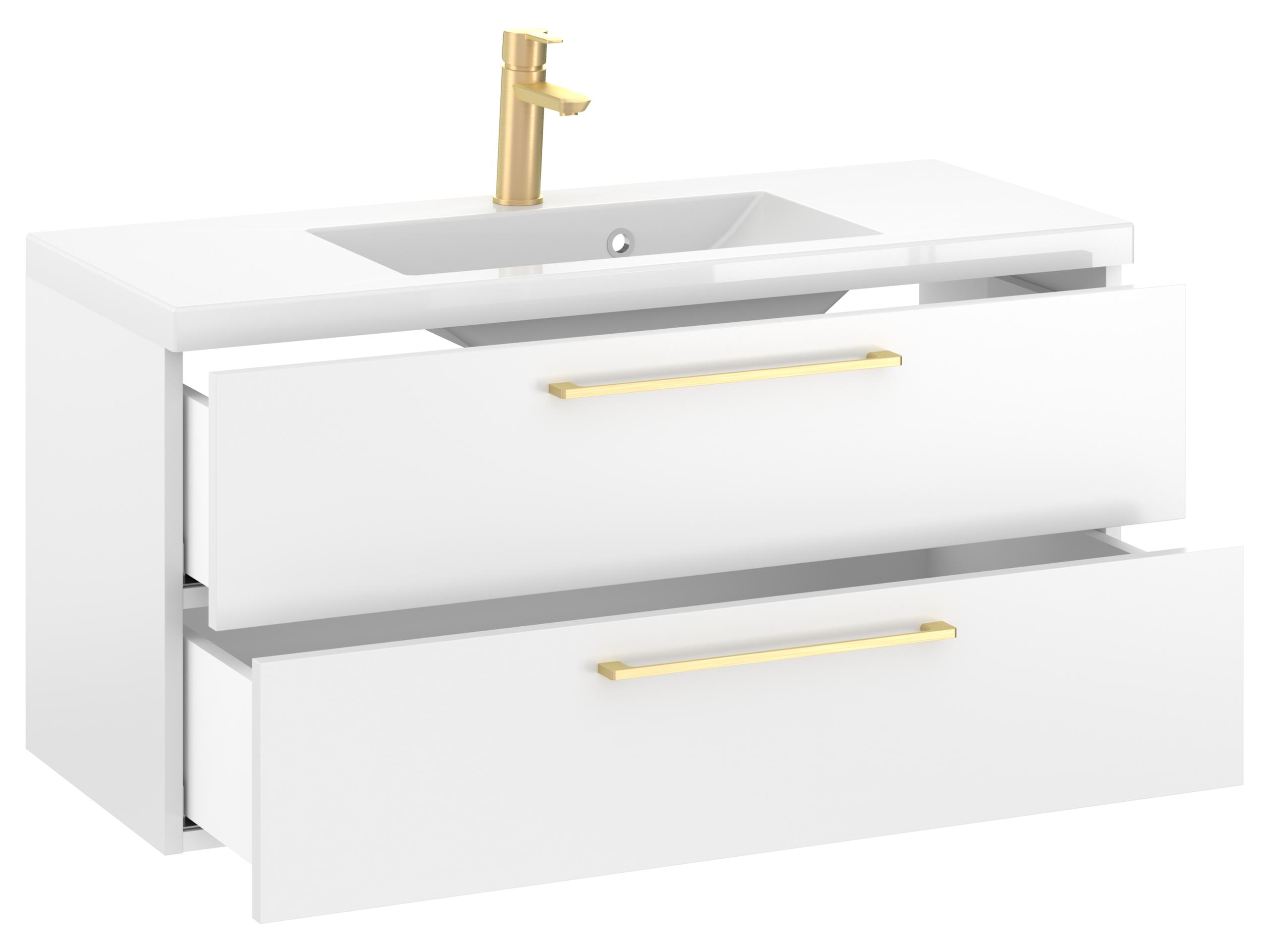 SYMBOL: RON-U100_M-B-UZS Skopiowano do schowkaSzafka Wisząca Z Umywalką RON 100 cm - Biały Mat - Uchwyty Złote Szczotkowane